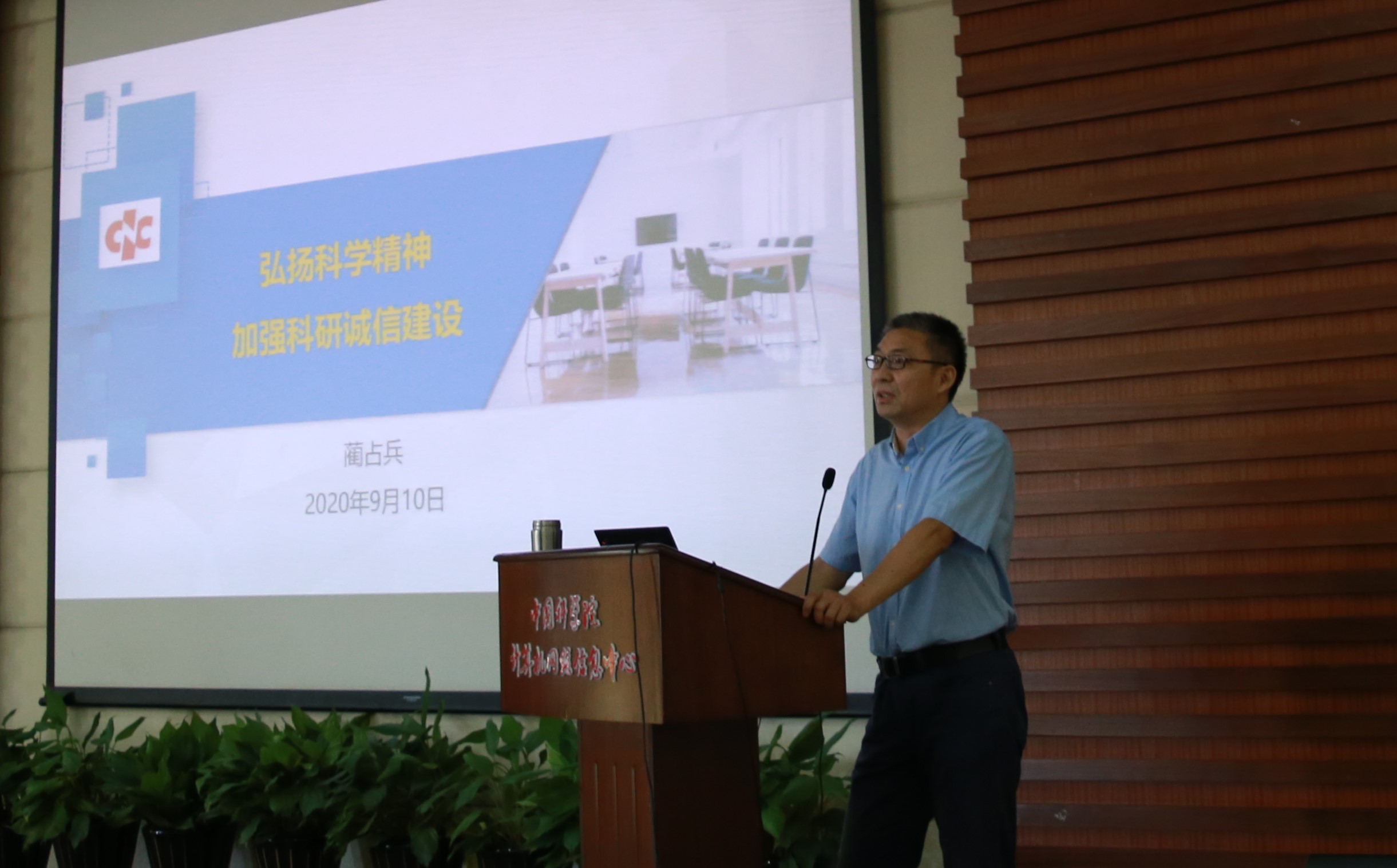 9月10日,為加強(qiáng)中心科研誠(chéng)信宣傳教育,計(jì)算機(jī)網(wǎng)絡(luò)信息中心召開(kāi)科研誠(chéng)信及相關(guān)政策專(zhuān)題培訓(xùn)學(xué)習(xí)會(huì)。黨委副書(shū)記、紀(jì)委書(shū)記藺占兵作了題為《弘揚(yáng)科學(xué)精神 加強(qiáng)科研誠(chéng)信建設(shè)》的主題報(bào)告。報(bào)告從道德規(guī)范、科學(xué)精神、黨章黨紀(jì)、法規(guī)政策等方面闡述和強(qiáng)調(diào)了科研誠(chéng)信是科技創(chuàng)新的基石;培訓(xùn)學(xué)習(xí)了中央和國(guó)家近年來(lái)出臺(tái)的加強(qiáng)科研誠(chéng)信和學(xué)風(fēng)作風(fēng)建設(shè)、弘揚(yáng)新時(shí)代科學(xué)家精神、規(guī)范科技活動(dòng)管理及壓實(shí)科技任務(wù)承擔(dān)單位主體責(zé)任等政策規(guī)定,結(jié)合典型案例開(kāi)展了科研失信和不端行為的警示教育。培訓(xùn)會(huì)教育中心全體職工和學(xué)生要有底線思維和意識(shí),自覺(jué)踐行和大力弘揚(yáng)新時(shí)代科學(xué)家精神,秉承我院“唯真求實(shí)協(xié)力創(chuàng)新”的院風(fēng)和“科學(xué)民主愛(ài)國(guó)奉獻(xiàn)”優(yōu)良傳統(tǒng),共同為中心科技創(chuàng)新?tīng)I(yíng)造風(fēng)清氣正的環(huán)境。