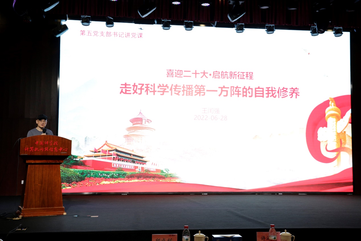落實中心黨建工作,孫健英充分肯定第五黨支部“三融合一加強”工作法,將支部書記講黨課與團隊建設融合,有效推進業(yè)務發(fā)展。為迎接黨的二十大,結(jié)合新媒體部團隊建設,支部書記王閏強以《喜迎二十大·啟航新征程:走好科學傳播第一方陣的自我修養(yǎng)》為主題講黨課。報告指出在我國邁向第二個百年奮斗目標的新征程中,中科院是國家戰(zhàn)略科技力量主力軍,作為“國家隊”“國家人”,必須心系“國家事”肩扛“國家責”。新媒體部作為科普國家隊、院網(wǎng)絡科學傳播和數(shù)字化繼續(xù)教育總體單位,按照中心“十四五”重點布局,圍繞科技人才發(fā)展,實現(xiàn)為高水平科技自立自強提供戰(zhàn)略支撐。基于當前業(yè)務發(fā)展態(tài)勢,作為新媒體部一員,需要不斷加強學習、學會學習,提升個人修養(yǎng)和綜合能力,走好科學傳播第一方陣。