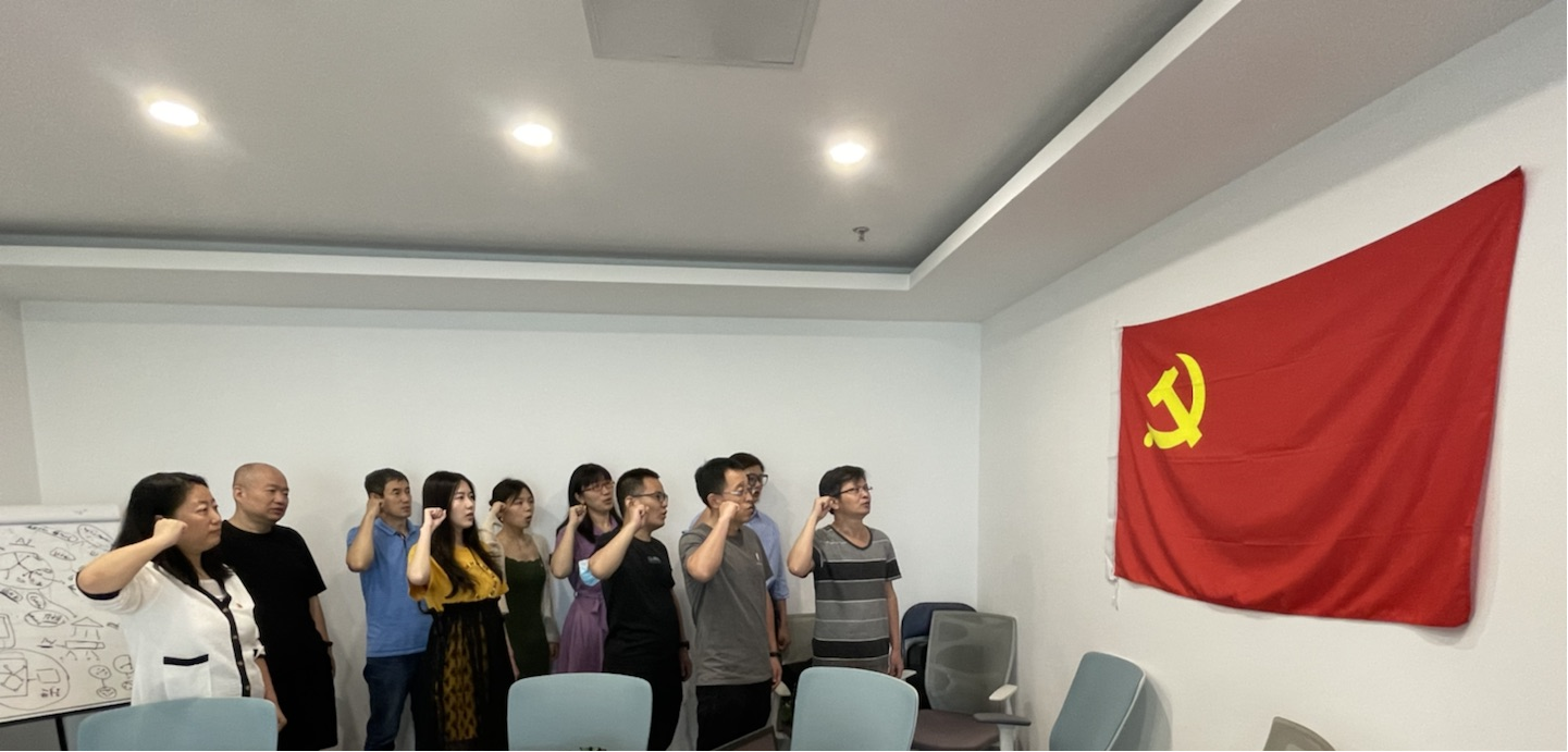 正值建黨101周年,黨員同志們一起在黨旗下重溫入黨誓詞,回顧入黨初心。黨員們?cè)诜窒憝h(huán)節(jié)表示恰逢香港回歸25周年,為祖國的飛速發(fā)展而感到驕傲,一定不忘初心、牢記使命,在自己的崗位上對(duì)黨忠誠,盡職職責(zé),讓我們的黨、我們的國家日益強(qiáng)盛。(撰稿:陳昕)