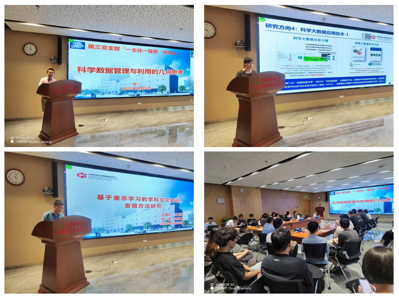 為進一步落實中心2022年黨的建設(shè)工作要點,充分發(fā)揮“黨建引領(lǐng)科研,數(shù)據(jù)融匯創(chuàng)新”作用,落實學(xué)生思政工作實施方案等,第三黨支部于8月24日舉辦“一主任一報告“系列專題活動并召開第三季度思政交流及新生見面會,支委、黨小組長、實驗室主任、導(dǎo)師及全體研究生共計40余人參加。第三黨支部書記沈志宏主持。