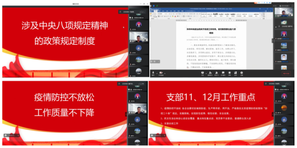 11月24日,第十黨支部第一黨小組召開線上專題學(xué)習(xí)會,持續(xù)深入學(xué)習(xí)黨的二十大精神,同時專題學(xué)習(xí)“涉及中央八項規(guī)定精神的政策規(guī)定制度”,并再次宣講疫情防控要求。小組全體黨員、入黨積極分子及企業(yè)管理人員參加會議。