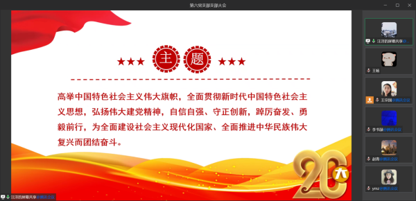 2022年12月9日,第六黨支部以學(xué)習(xí)二十大精神為主題召開線上支部大會。大會由支部書記汪洋主持,第六黨支部黨員、積極分子共計(jì)54人參加了會議,并邀請了中心副主任(主持工作)謝高崗、黨委委員金鐘和黨群辦主任孫健英蒞臨指導(dǎo)。