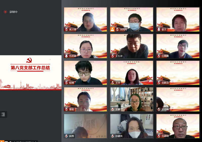 12月29日,第八黨支部在線上召開全體黨員大會暨組織生活會。全體黨員、發(fā)展對象在線參會,中心黨委書記孫德剛、黨群辦公室主任孫健英到會指導(dǎo)。支部書記黎文主持會議。