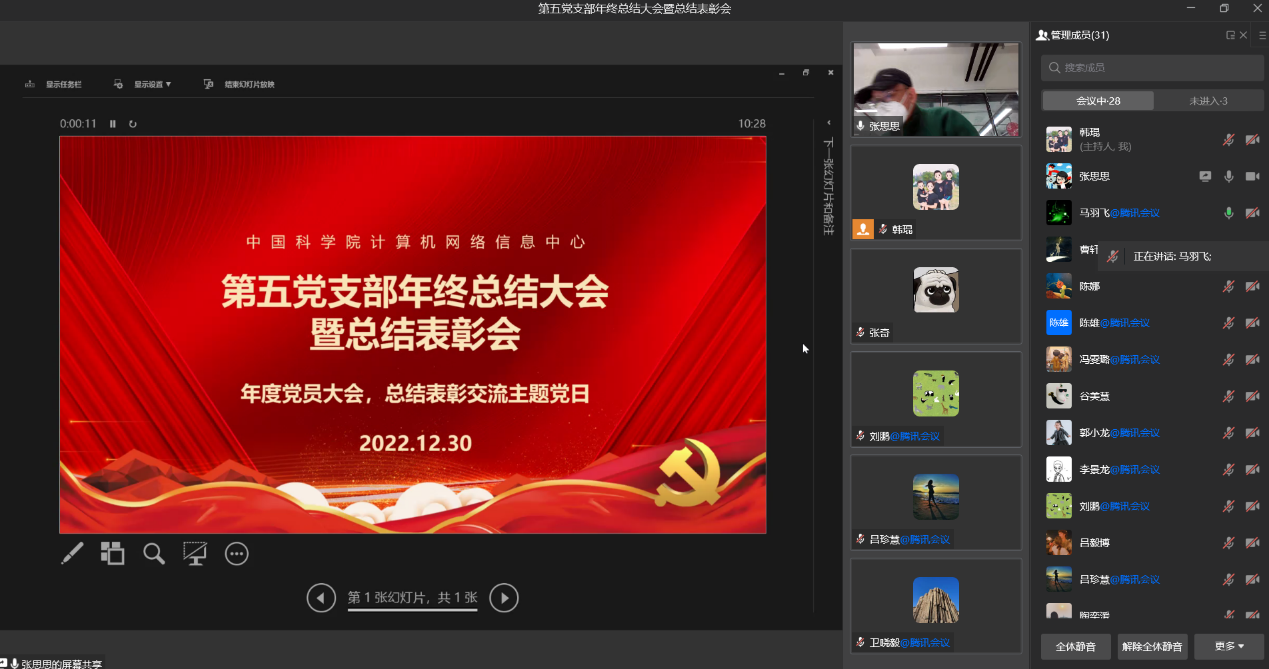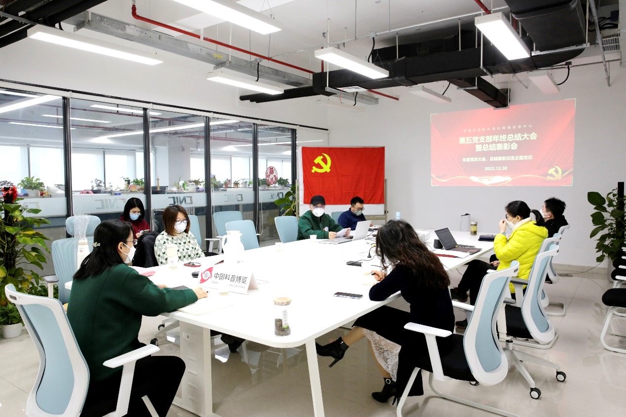 2022年12月30日,第五黨支部召開全體黨員大會暨總結(jié)表彰會,全體黨員通過線下+線上方式參會,中心黨委委員許海燕、黨群辦公室主任孫健英參會指導(dǎo)。會議由黨支部書記王閏強主持。