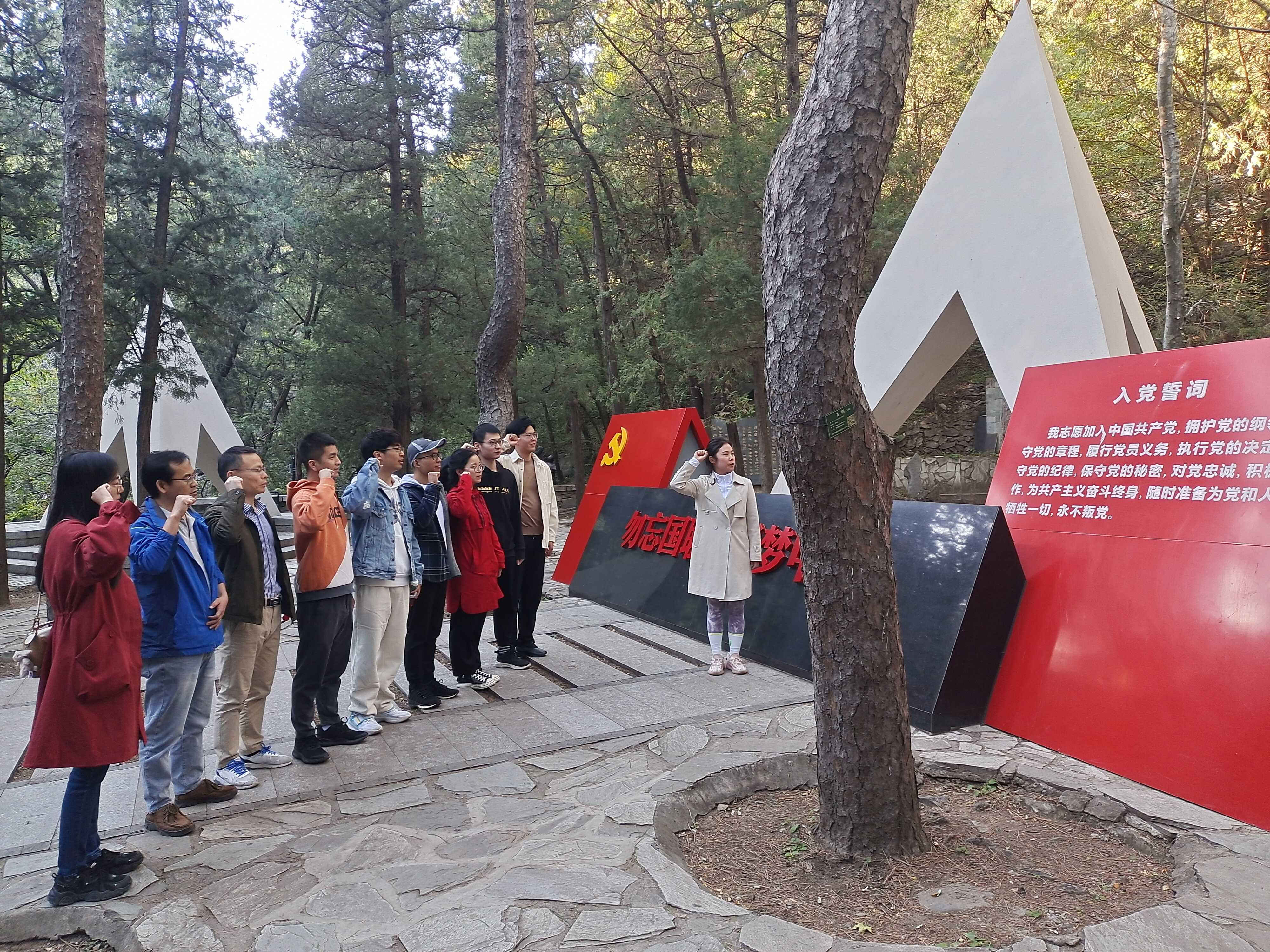 ????10月20日,第七黨支部先進(jìn)網(wǎng)絡(luò)黨小組黨員、發(fā)展對(duì)象、入黨積極分子赴國家植物園“一二·九”運(yùn)動(dòng)紀(jì)念亭參觀學(xué)習(xí),傳承愛國情懷,重溫入黨誓詞。