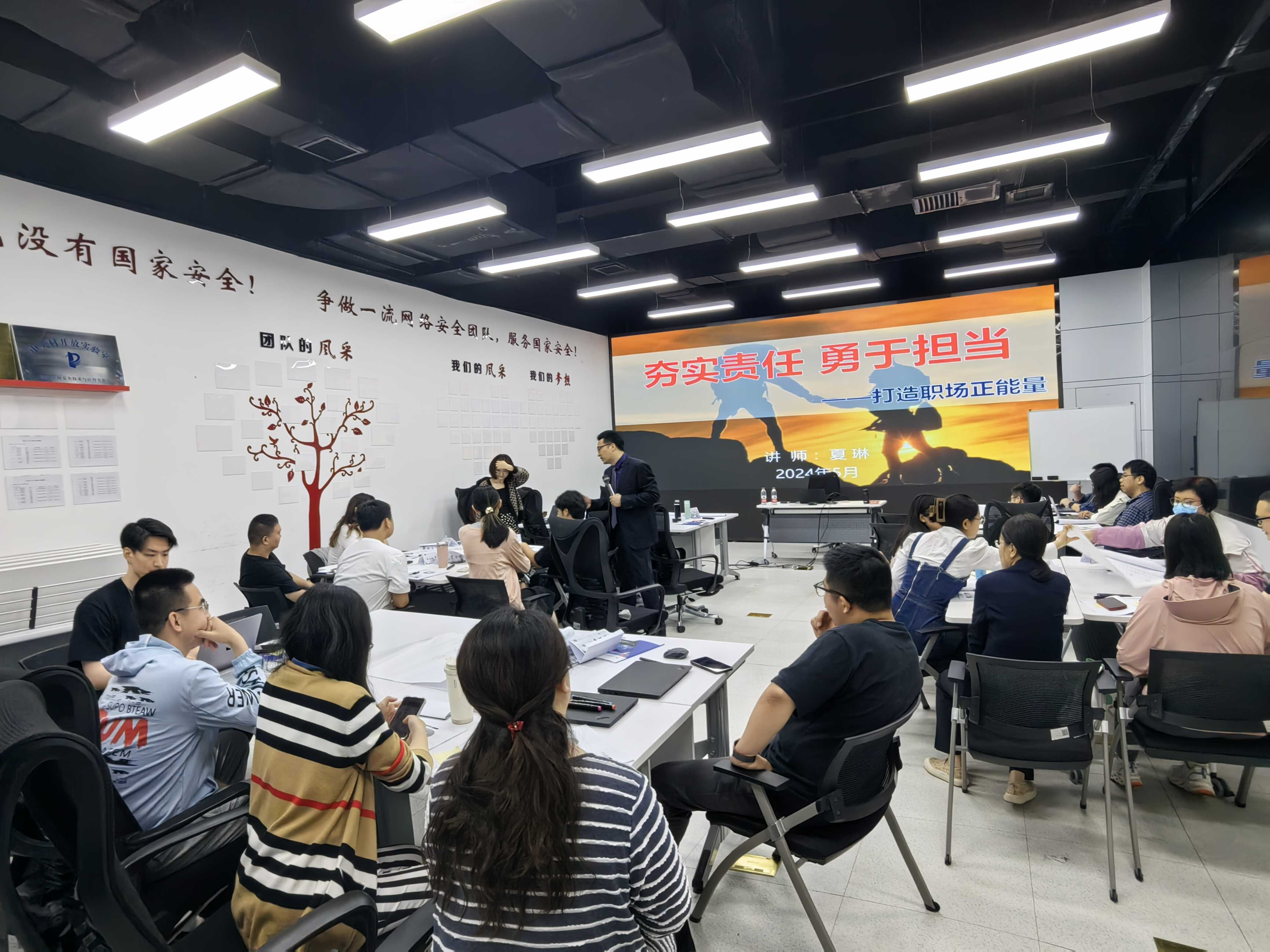 ????5月29日,第八黨支部開展“夯實責(zé)任 勇于擔(dān)當(dāng)—打造職場正能量”專題學(xué)習(xí)會。第八黨支部黨員、安全部職工共計30余人參會。此次學(xué)習(xí)會旨在深化黨員和職工對責(zé)任擔(dān)當(dāng)?shù)睦斫?,提升團隊凝聚力和執(zhí)行力,共同為國家網(wǎng)絡(luò)空間安全事業(yè)的發(fā)展貢獻力量。
