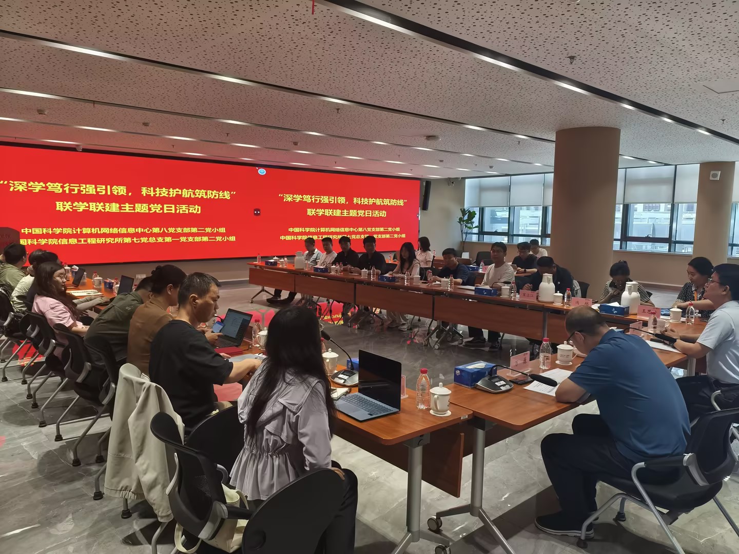 6月20日,第八黨支部與中國科學院信息工程研究所第七黨總支聯(lián)合開展“深學篤行強引領,科技護航筑防線” 聯(lián)學聯(lián)建活動?;顒佑啥殴诂幫局鞒?。