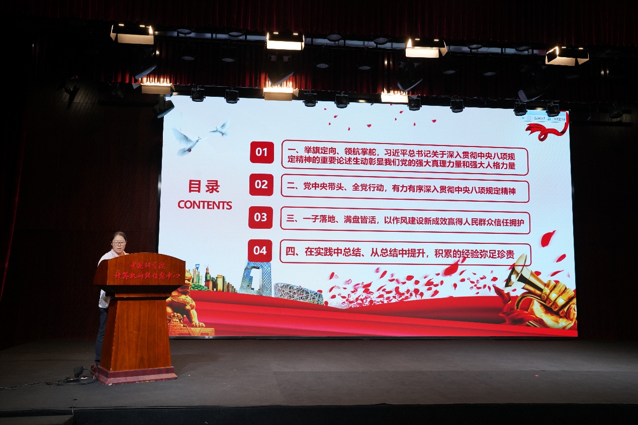 支部副書記趙以霞系統(tǒng)梳理了黨的十八大以來貫徹落實(shí)中央八項(xiàng)規(guī)定精神取得的顯著成效和寶貴經(jīng)驗(yàn)。她以黨史為鏡,從“解決什么問題、謀劃什么方案、怎樣解決問題、問題解決怎樣、應(yīng)該怎樣繼續(xù)”五個(gè)維度,深入淺出地闡釋了新時(shí)代推進(jìn)全面從嚴(yán)治黨的“自我革命”答案。