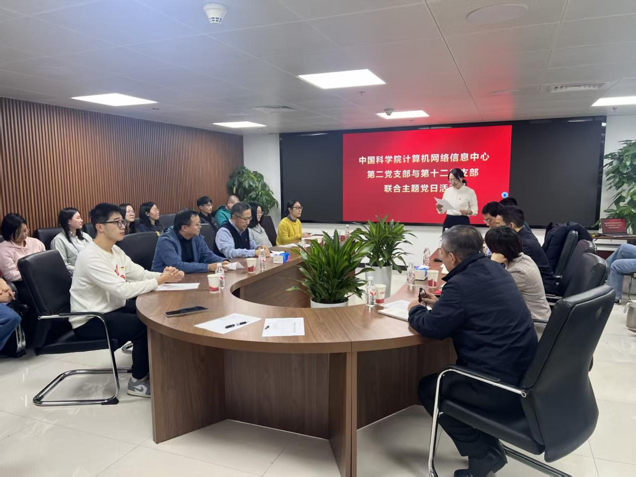 ????為深入學(xué)習(xí)貫徹黨的二十屆四中全會(huì)精神和《中共中央關(guān)于制定國(guó)民經(jīng)濟(jì)和社會(huì)發(fā)展第十五個(gè)五年規(guī)劃的建議》,推動(dòng)黨建工作與業(yè)務(wù)發(fā)展深度融合,11月25日,中心第二黨支部與第十二黨支部聯(lián)合舉辦主題黨日活動(dòng)。中心黨委委員、第二黨支部書記、高性能計(jì)算技術(shù)與應(yīng)用發(fā)展部主任金鐘,第十二黨支部書記齊勇及雙方支部委員、黨員代表、中科信控公司相關(guān)負(fù)責(zé)人等參加活動(dòng)。