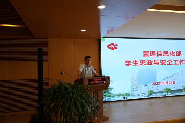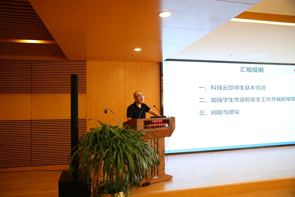 會上,人事教育處處長喬建偉詳細解讀了院相關(guān)規(guī)章制度與中心實施細則,并就貫徹落實提出了意見建議??萍荚瓢l(fā)展部主任黎建輝、管理信息化部副主任于建軍作典型發(fā)言,重點匯報了本部門學(xué)生思政與安全工作的思路舉措、特色工作以及存在的問題與意見建議。研究生教育辦公室孫芙寧介紹了第二季度學(xué)生思政與安全方面的重點工作。