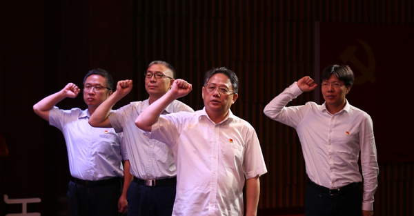 隨后,在廖方宇領(lǐng)誓下,全體黨員面向黨旗重溫入黨誓詞。