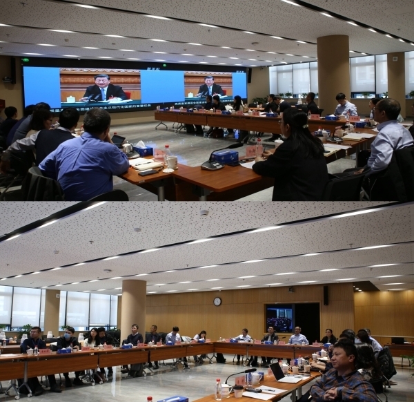 在參觀了中國(guó)科學(xué)院“東方”超級(jí)計(jì)算系統(tǒng)和聽取中國(guó)科技云、科學(xué)大數(shù)據(jù)等ECC監(jiān)控情況介紹后,與會(huì)人員一起學(xué)習(xí)了《習(xí)近平總書記在參加十四屆全國(guó)人大一次會(huì)議江蘇代表團(tuán)審議時(shí)的講話》,并交流了學(xué)習(xí)體會(huì)。