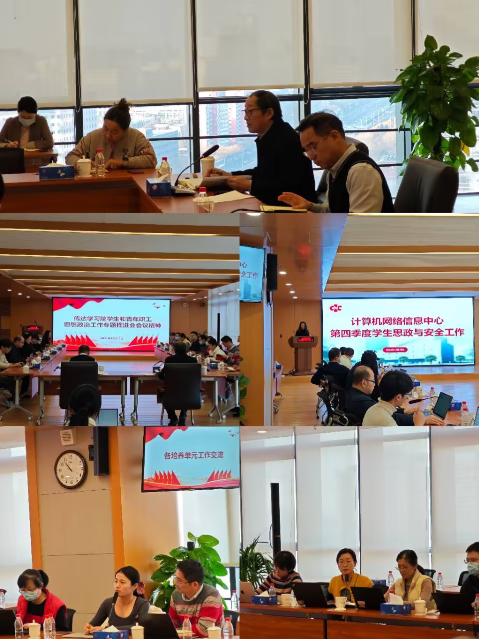 2023年12月28日,計(jì)算機(jī)網(wǎng)絡(luò)信息中心召開2023年度第四季度學(xué)生思政與安全工作會(huì)。中心黨委書記孫德剛、副主任周園春出席會(huì)議,黨群辦、人事教育處(研究生教育辦公室)、各業(yè)務(wù)部門負(fù)責(zé)人、部門兼職輔導(dǎo)員、各黨支部青年委員、團(tuán)委代表、研究生會(huì)和近三年新聘任導(dǎo)師參加會(huì)議。會(huì)議由黨群辦公室主任孫健英主持。