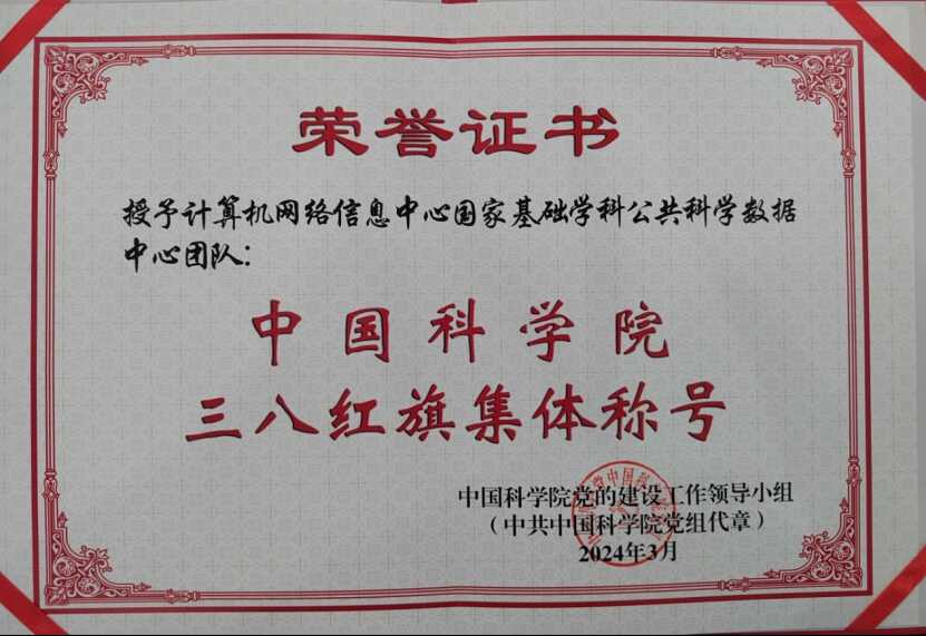 我中心國(guó)家基礎(chǔ)學(xué)科公共科學(xué)數(shù)據(jù)中心團(tuán)隊(duì)榮獲“中國(guó)科學(xué)院三八紅旗集體”稱號(hào),并在我院3月6日舉行的“搶占科技制高點(diǎn),巾幗逐夢(mèng)立新功”先進(jìn)事跡報(bào)告會(huì)暨表彰大會(huì)受到表彰。