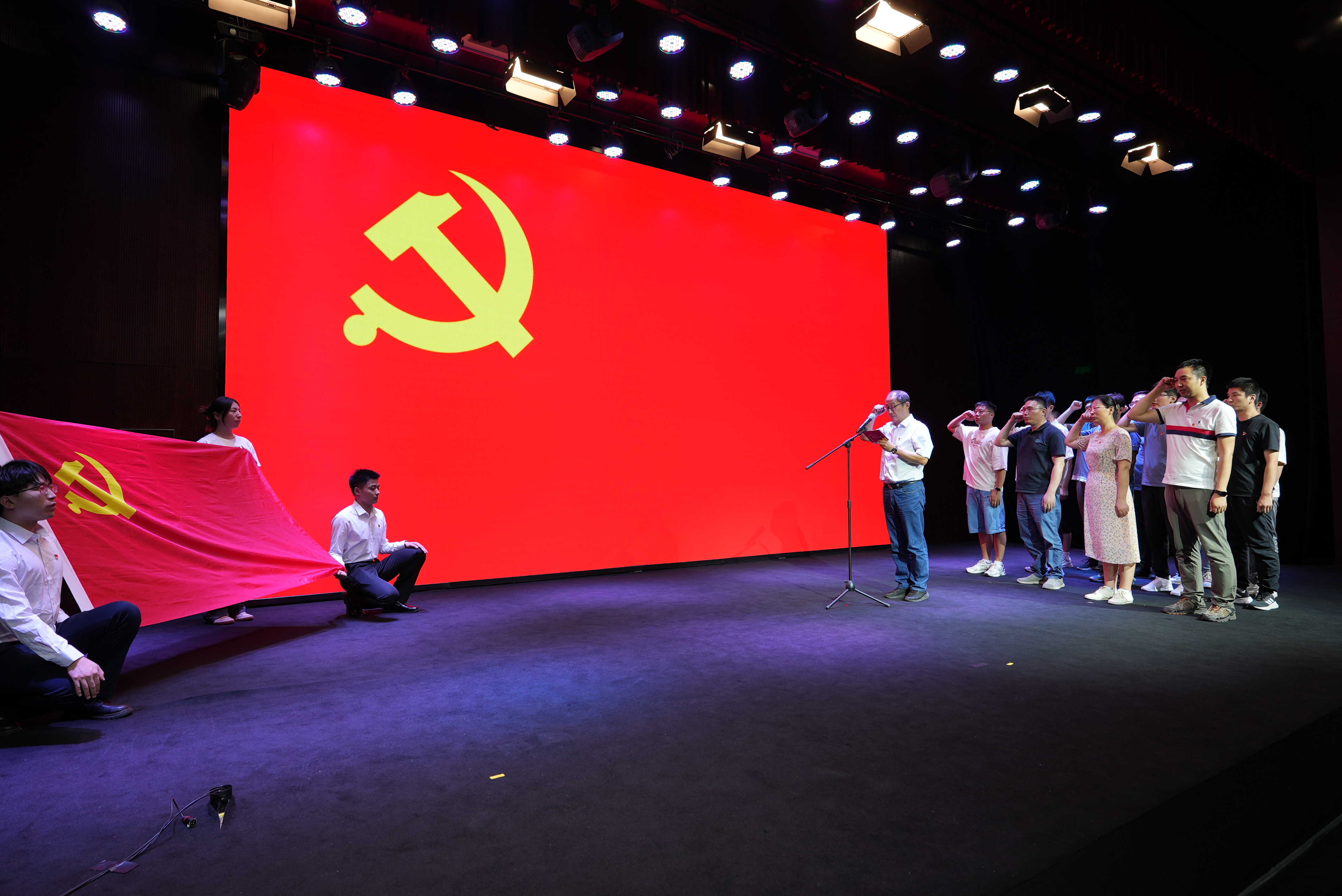 在莊嚴的國歌聲中,大會拉開帷幕。一堂別開生面的黨史課在音畫詩中開始了,領誦人王楊以飽含深情的語言,帶領大家回顧了黨的歷史。從1919年的五四運動到1921年7月在嘉興南湖的紅船上誕生的第一個綱領,再到中國共產(chǎn)黨這個紅彤彤的名字開啟了中國革命的新紀元,歷史的篇章一幕幕在眼前展開。講述人楊植在音樂中娓娓道來,講訴了一代又一代的中華兒女在黨旗下集結(jié),誓把新時代的旋律奏響,中國青年必以“青春之我”響應“青春中國”?!耙患埿殴{寄初心”視頻片記錄了新黨員同志們的成長心路和入黨初心。在中心黨委書記孫德剛的帶領下,新黨員進行入黨宣誓,全體黨員重溫入黨誓詞。