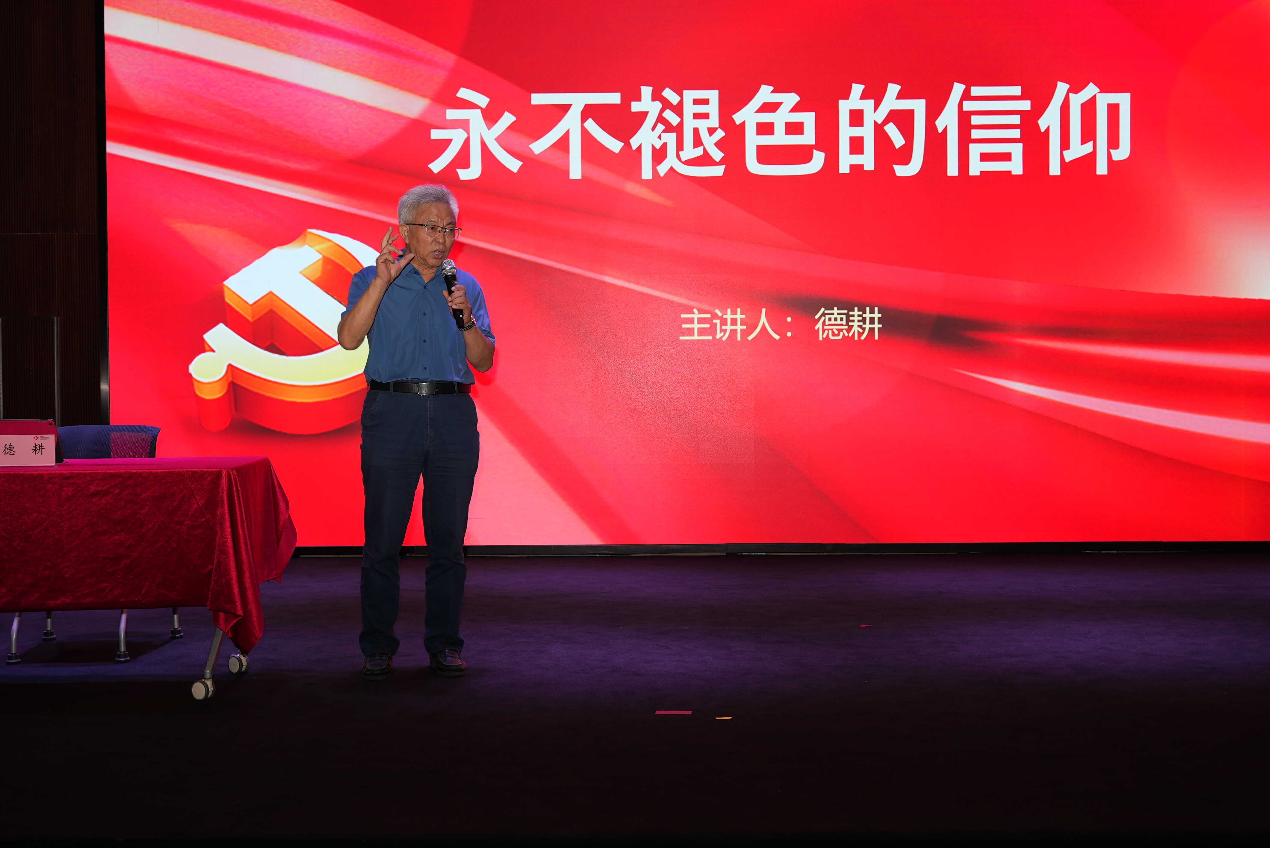 在黨課報告環(huán)節(jié),有著45年黨齡的喜馬拉雅紅色主播德耕老師以《永不褪色的信仰》為題,按照黨史發(fā)展的脈絡,將有趣的知識點、歷史人物之間的關系和鮮為人知的故事串聯(lián)起來,聲情并茂地為大家上了一堂精彩的黨史課。