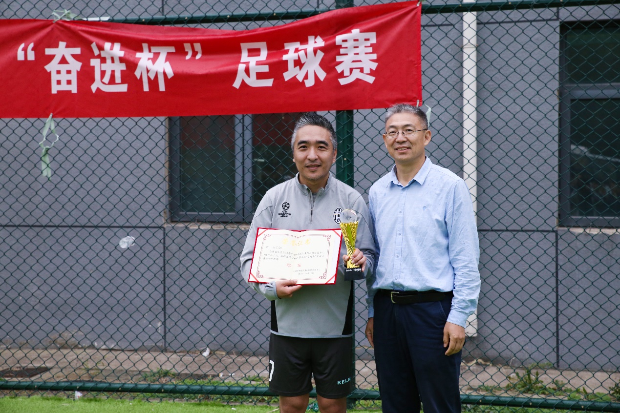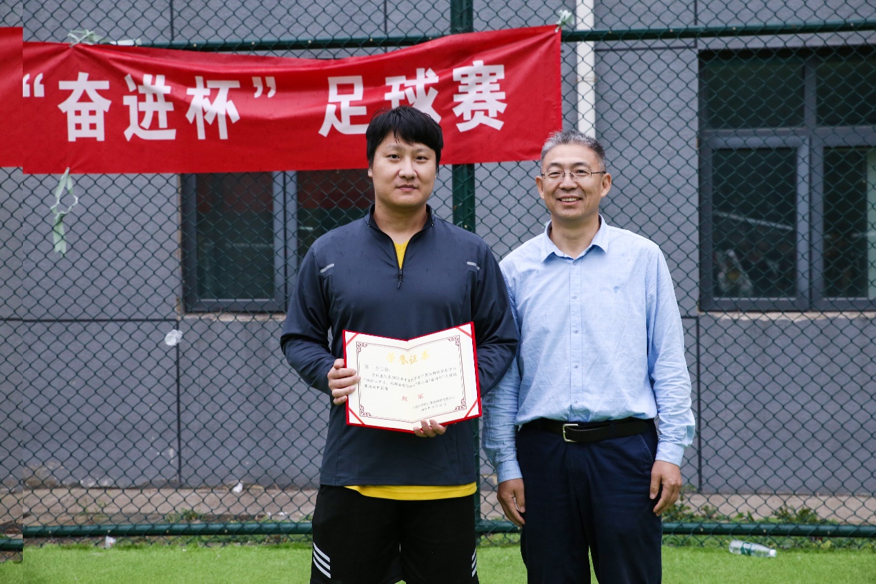 ????經(jīng)過兩天激烈角逐,最終第三分工會代表隊在決賽中以點球大戰(zhàn)勝出、蟬聯(lián)冠軍,第五分工會代表隊榮獲亞軍,第七八聯(lián)合分工會代表隊榮獲季軍,第一分工會代表隊榮獲殿軍。藺占兵為獲獎隊伍頒獎。