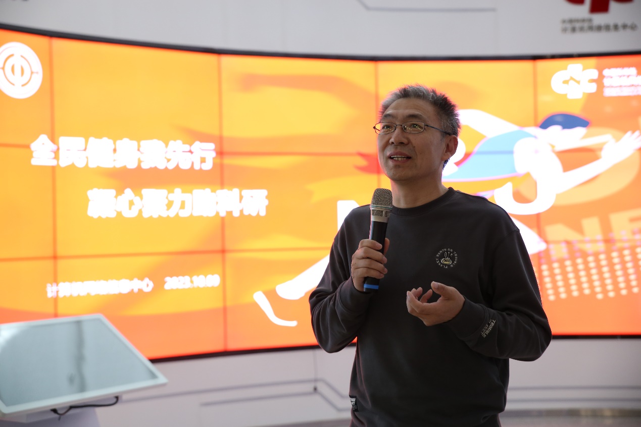 ????10月9日,中國科學院計算機網(wǎng)絡信息中心第十一屆健身周開幕,中心工會主席藺占兵致開幕辭。來自各分工會的八支代表隊歡聚一堂,積極參加為期三天的比賽項目。