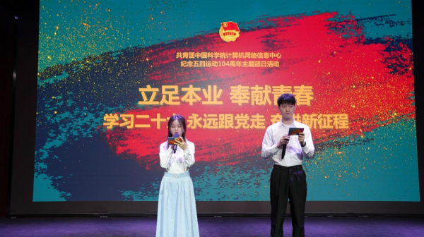4月27日,值五四運動104周年到來之際,中國科學(xué)院計算機網(wǎng)絡(luò)信息中心團(tuán)委聯(lián)合研究生會舉辦了“立足本業(yè) 奉獻(xiàn)青春”五四慶祝活動。中心黨委書記孫德剛,紀(jì)委書記藺占兵,黨群辦主任孫健英,人教處處長喬建偉,人教處副處長孫芙寧,團(tuán)委書記姜璐璐及百余名青年代表參加活動。中國科學(xué)院重大科技任務(wù)局專用技術(shù)處主管李磊霞應(yīng)邀參加活動。