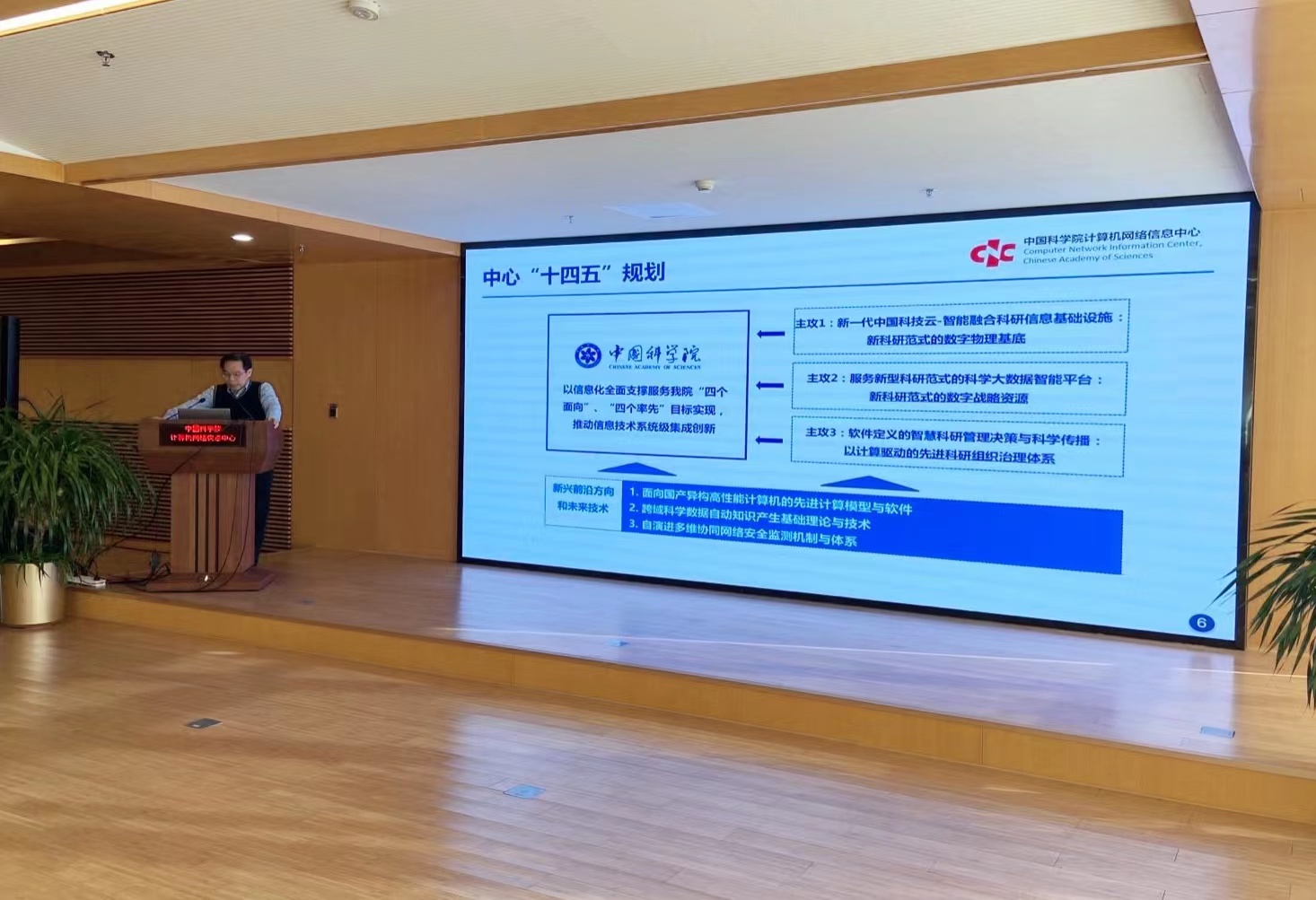 1月27日,科學技術(shù)部基礎(chǔ)研究司鄭健副司長、李華處長、閆益康同志,國家科技基礎(chǔ)條件平臺中心石蕾處長、高孟緒副研究員一行到中國科學院計算機網(wǎng)絡信息中心調(diào)研工作。中科院網(wǎng)信辦執(zhí)行副主任褚大偉、鄭曉歡高級工程師,中國科學院計算機網(wǎng)絡信息中心黨委書記廖方宇等相關(guān)人員出席調(diào)研會。會議由網(wǎng)絡中心副主任周園春主持。