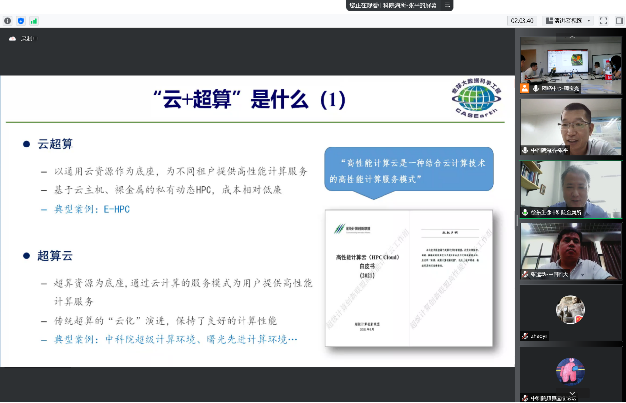 隨著計算領(lǐng)域的發(fā)展,超級計算、云計算、智能計算等多種計算架構(gòu)出現(xiàn)融合趨勢,與會專家就“云+超算”計算架構(gòu)的融合,智能計算集群上并行應(yīng)用的部署,以及異地分布計算資源的共享和服務(wù)云化進(jìn)行了深入的技術(shù)和實踐經(jīng)驗分享。另外,會議邀請了院內(nèi)其他院所專家針對各自學(xué)科領(lǐng)域和用戶特點,分享了計算資源的建設(shè)、優(yōu)化及安全運維工作的經(jīng)驗。