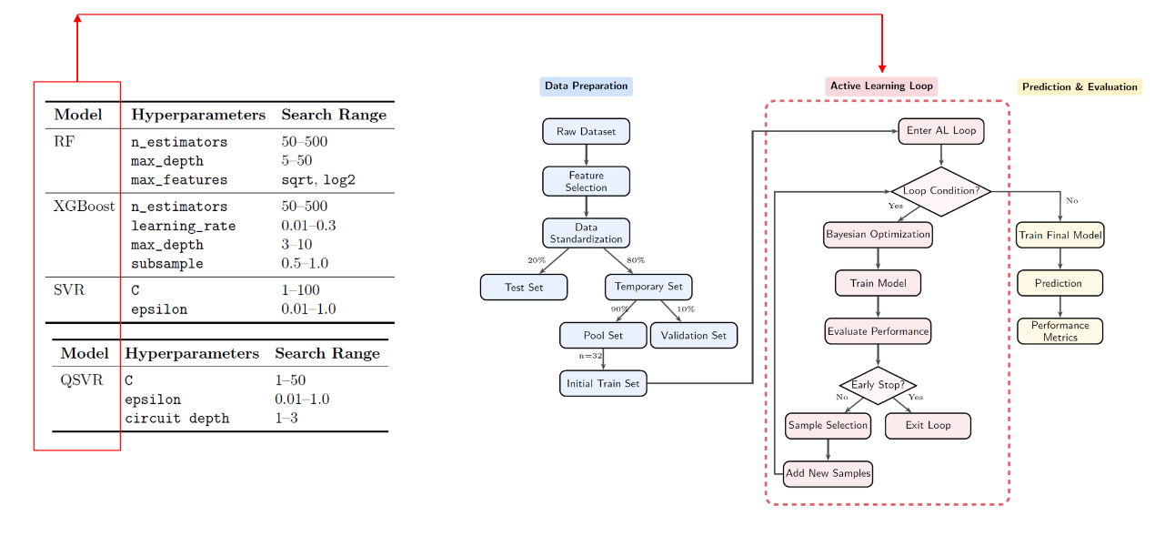 燒結(jié)釹鐵硼(NdFeB)磁體是電動(dòng)汽車、風(fēng)力渦輪機(jī)等尖端科技的核心組件。近日,計(jì)算機(jī)網(wǎng)絡(luò)信息中心與中國科學(xué)院贛江創(chuàng)新研究院合作,構(gòu)建了首個(gè)包含近2000個(gè)樣本的“工業(yè)-學(xué)術(shù)”雙域數(shù)據(jù)庫,并利用高性能計(jì)算輔助的機(jī)器學(xué)習(xí)(HPC-assisted ML/QML),如經(jīng)典機(jī)器學(xué)習(xí)模型RF(Random?Forest), XGBoost(eXtremeGradient?Boosting), SVR(Support?Vector?Regression,?支持向量回歸)和量子機(jī)器學(xué)習(xí)模型如量子增強(qiáng)的向量回歸QSVR,在虛擬實(shí)驗(yàn)環(huán)境中系統(tǒng)研究了數(shù)據(jù)選擇策略的有效性。