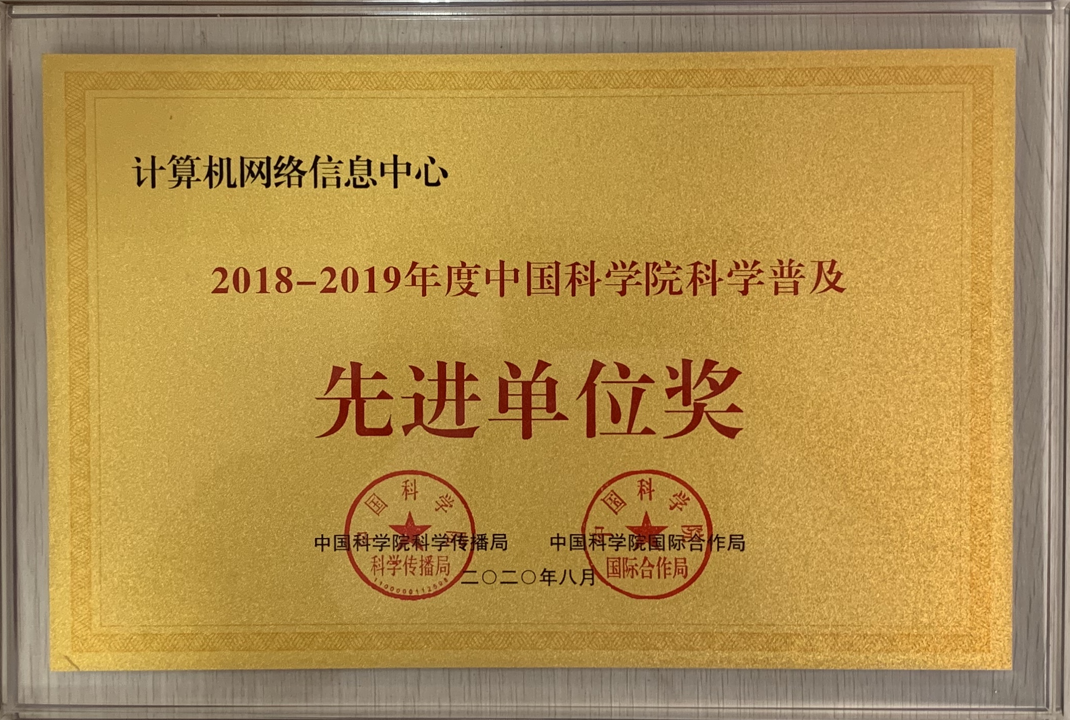 計(jì)算機(jī)網(wǎng)絡(luò)信息中心榮獲2018-2019年度“中國(guó)科學(xué)院科學(xué)傳播先進(jìn)單位獎(jiǎng)”和“中國(guó)科學(xué)院科學(xué)普及先進(jìn)單位獎(jiǎng)”