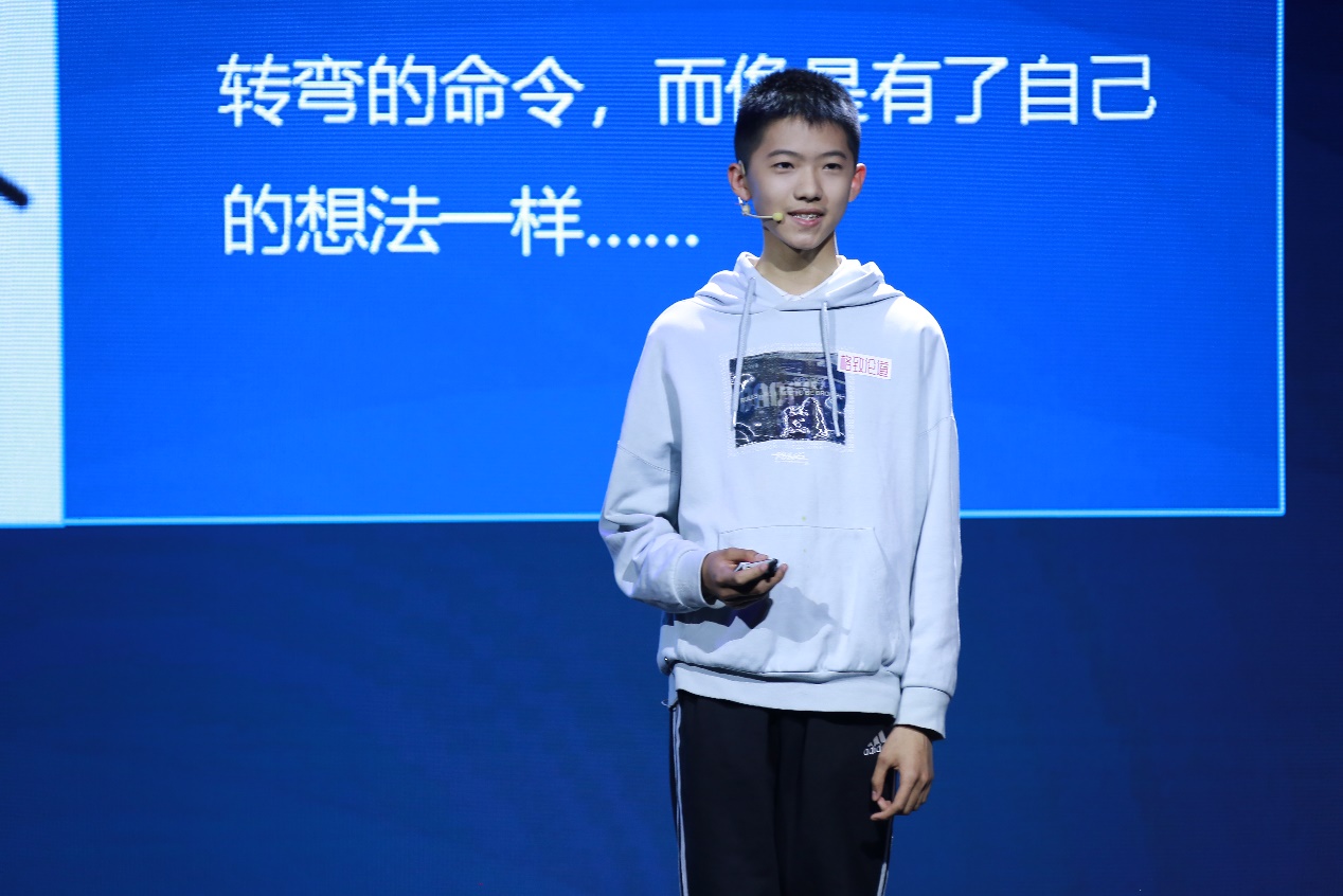 莊肅涵結(jié)合自身科研實(shí)踐,與大家分享他對(duì)人工智能的理解,一同探討人與人工智能的未來(lái)?!罢?yàn)槲覀儾粩嗨伎迹覀儾懦蔀榱宋覀儭?,這份真誠(chéng)的感悟贏得了現(xiàn)場(chǎng)觀眾的共鳴。