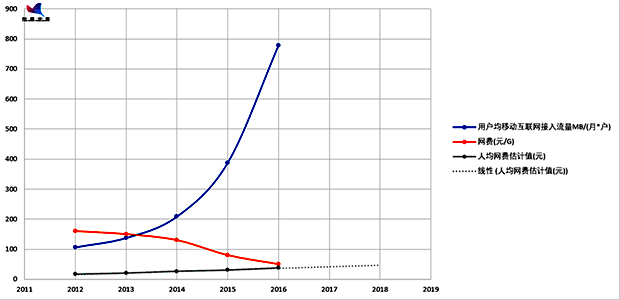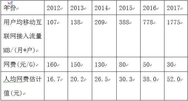 我們可以清楚地看出流量價格逐年下降的同時,人們對網(wǎng)費的支出在增加(大概沒人會在2G時代用掉1G的網(wǎng)絡吧?),這一趨勢在短期內(nèi)應當不會改變。2G時代看文字,3G看圖片,4G看電影,在流量價格下降而網(wǎng)速上升的同時人們愈發(fā)享受網(wǎng)絡帶來的種種便利。