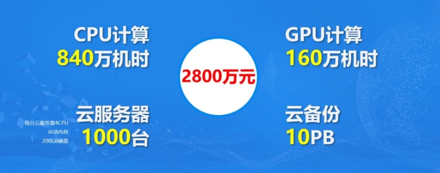 目前, “中國科技云2020應(yīng)用推進(jìn)計(jì)劃”也啟動(dòng)了,該計(jì)劃將通過公開征集與擇優(yōu)遴選等方式,為有重大產(chǎn)出的科研項(xiàng)目免費(fèi)提供計(jì)算資源等,提供的資源包括840萬CPU計(jì)算機(jī)時(shí)、160萬GPU計(jì)算機(jī)時(shí)、1000臺(tái)云服務(wù)器和10PB的云備份,總價(jià)值 2800萬元。