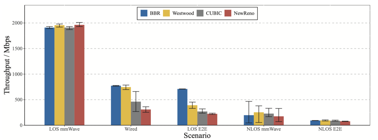先進(jìn)網(wǎng)絡(luò)發(fā)展部在基于5G/B5G毫米波網(wǎng)絡(luò)的傳輸協(xié)議性能測(cè)量工作中取得了新進(jìn)展,基于部門自有60GHz毫米波網(wǎng)絡(luò)試驗(yàn)床,從不同類別的擁塞控制算法(CCAs)粒度分析了傳輸協(xié)議在未來(lái)超高帶寬易損無(wú)線鏈路和高帶寬高時(shí)延易損端到端鏈路中的表現(xiàn),并驗(yàn)證了邊緣側(cè)在跨異構(gòu)網(wǎng)絡(luò)傳輸中的性能提升作用。研究成果已發(fā)表在愛(ài)思唯爾(Elsevier)旗下知名期刊Computer Communications和國(guó)際電子電氣工程師學(xué)會(huì)(IEEE)旗下會(huì)議International Symposium on a World of Wireless, Mobile and Multimedia Networks (WoWMoM)上。