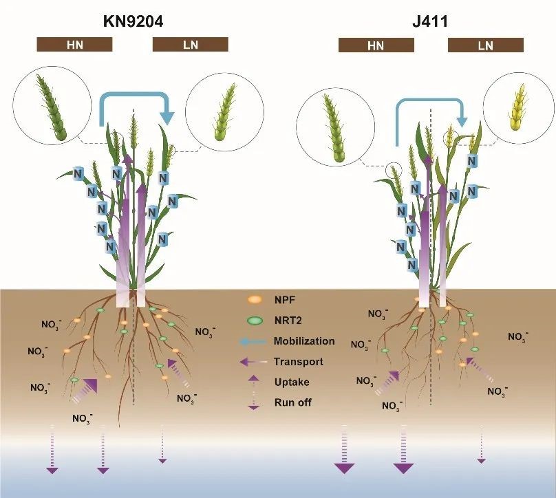 圖3 科農9204氮高效的遺傳及分子調控模型