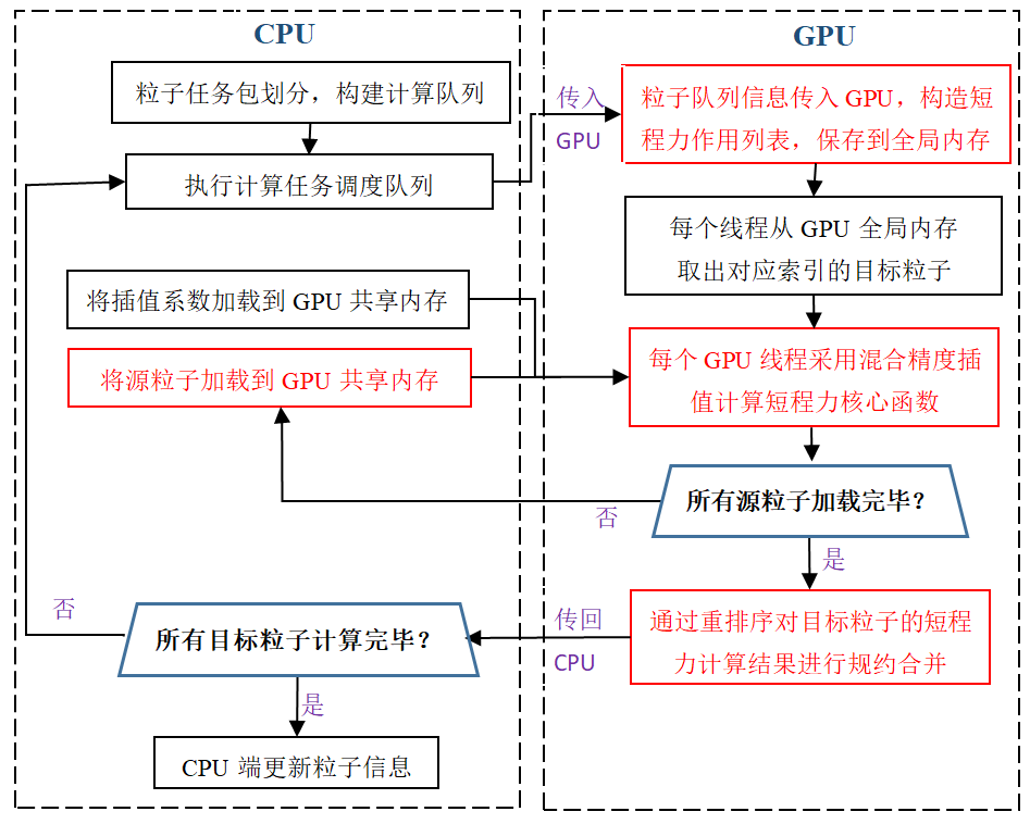針對天文N體在GPU異構并行模擬中的問題,我中心科研人員設計了一種性能優(yōu)化方法,該方法在GPU上構造了短程力作用列表和線程塊流水調(diào)度,將粒子信息輪流加載到GPU共享內(nèi)存中,采用插值多項式和混合精度優(yōu)化了核心函數(shù),實現(xiàn)了GPU上重排序并規(guī)約合并目標粒子信息,提升了天文N體異構并行模擬在國產(chǎn)加速卡上的計算性能。優(yōu)化后的程序在加速卡上的運行速度與同數(shù)量CPU核相比,短程力模塊加速比可以達到1000倍以上。