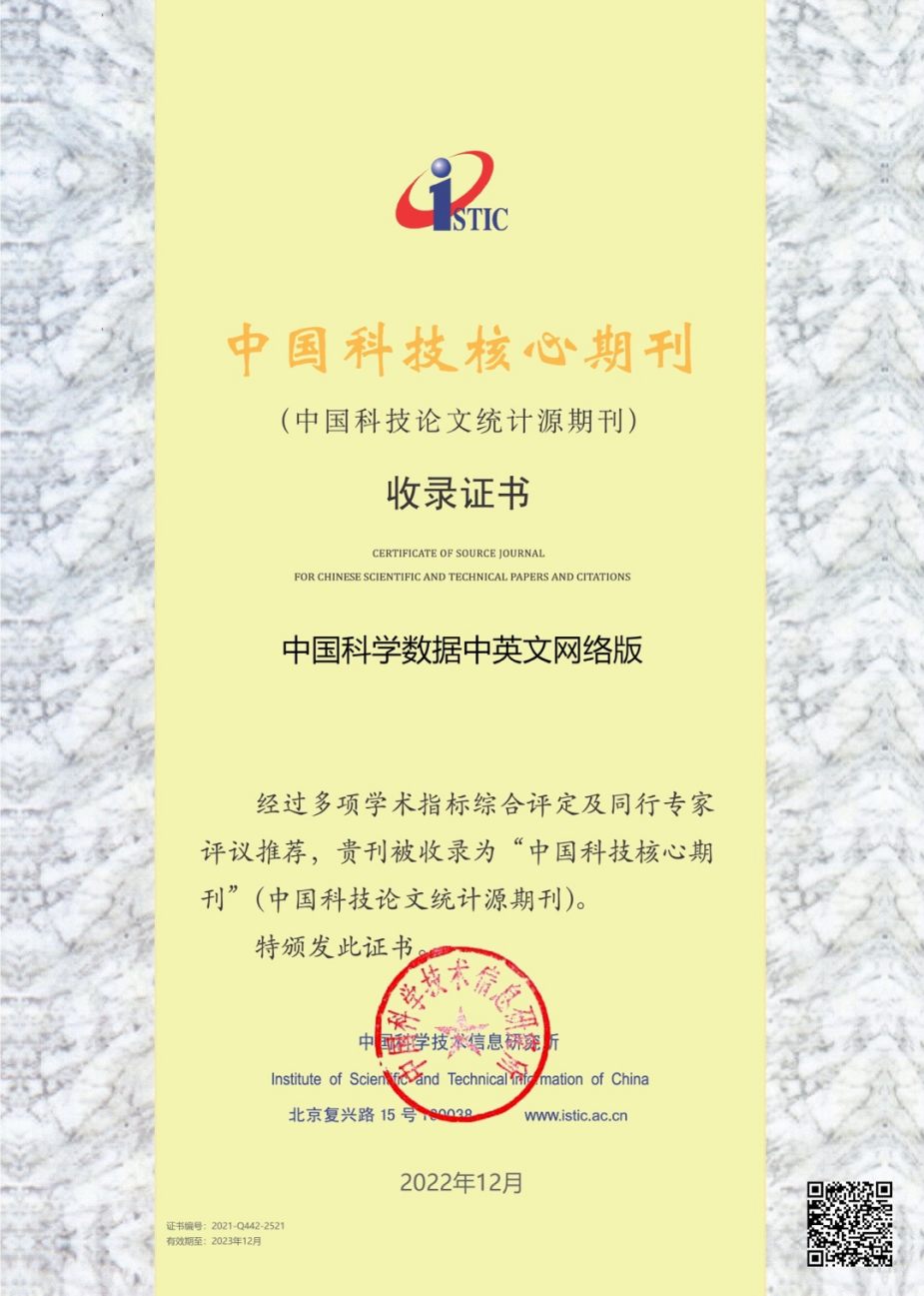 12月29日,2022年度中國科技論文統(tǒng)計(jì)報(bào)告發(fā)布會(huì)于線上召開,會(huì)上發(fā)布了《中國科技核心期刊目錄》(2022年版),我中心《中國科學(xué)數(shù)據(jù)(中英文網(wǎng)絡(luò)版)》入選“中國科技核心期刊”(中國科技論文統(tǒng)計(jì)源期刊)。