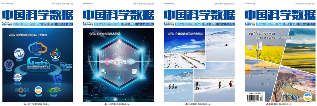 《中國科學(xué)數(shù)據(jù)(中英文網(wǎng)絡(luò)版)》是國家網(wǎng)絡(luò)連續(xù)型出版物的首批試點(diǎn)之一,也是目前國內(nèi)唯一面向多學(xué)科領(lǐng)域?qū)iT出版科學(xué)數(shù)據(jù)論文的學(xué)術(shù)期刊。自2015年創(chuàng)刊以來,始終堅(jiān)持將提升科學(xué)數(shù)據(jù)影響力、推進(jìn)數(shù)據(jù)共享和重用,為我國科技創(chuàng)新提供支持作為期刊發(fā)展的根本任務(wù),探索數(shù)據(jù)出版政策及實(shí)踐方法,實(shí)時(shí)追蹤并標(biāo)準(zhǔn)化展示我國優(yōu)質(zhì)科學(xué)數(shù)據(jù)資源。多年來,在編委、各學(xué)科專家和編輯部的共同努力下,辦刊質(zhì)量和學(xué)術(shù)影響力持續(xù)提升,結(jié)合國家重大戰(zhàn)略需求、國家重大專項(xiàng)、熱點(diǎn)前沿問題,組織策劃出版20多個(gè)優(yōu)質(zhì)的國際化、中國特色的專題數(shù)據(jù)集。2016年獲北京市音像電子網(wǎng)絡(luò)出版物獎(jiǎng)勵(lì),2017年入選中國科學(xué)引文數(shù)據(jù)庫(CSCD)來源期刊。 2021年,《中國科學(xué)數(shù)據(jù)(中英文網(wǎng)絡(luò)版)》編輯部獲第五屆中國出版政府獎(jiǎng)“先進(jìn)出版單位”。 目前與國家冰川凍土沙漠科學(xué)數(shù)據(jù)中心、國家生態(tài)科學(xué)數(shù)據(jù)中心、國家對(duì)地觀測(cè)科學(xué)數(shù)據(jù)中心、國家農(nóng)業(yè)科學(xué)數(shù)據(jù)中心等4個(gè)國家級(jí)數(shù)據(jù)中心一起打造數(shù)據(jù)出版聯(lián)盟,共同推進(jìn)數(shù)據(jù)共享。
