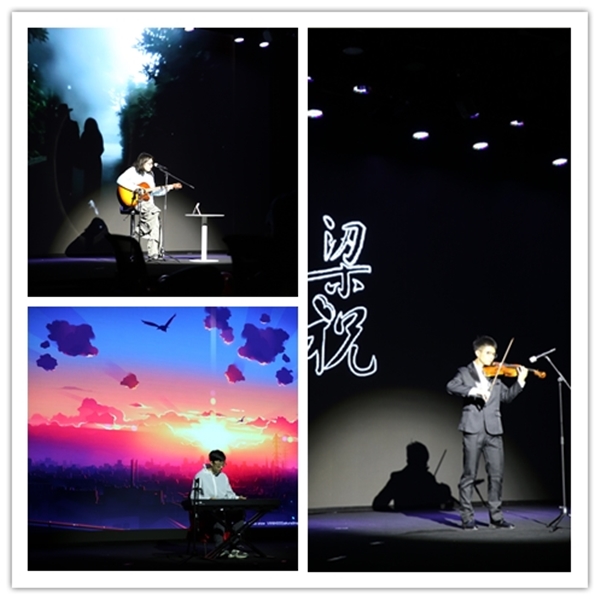 整場元旦晚會高潮迭起,精彩紛呈。同學(xué)們的表演既有充滿活力,激情四射的舞蹈,也有如冬日暖陽般溫柔的吉他彈唱;既有琴鍵間躍動的音符勾勒出愛情跌宕起伏的鋼琴獨奏,也有琴弦間流淌出梁山伯與祝英臺凄美愛情故事的小提琴獨奏;既有如傾如訴,娓娓道來的抒情歌曲獨唱,也有活潑歡樂,笑點不斷的歌曲串燒,還有婉轉(zhuǎn)悠揚、余音繞梁的京劇演唱,讓大家久久沉浸在“國粹”的藝術(shù)魅力中。其間穿插的新鮮有趣的游戲環(huán)節(jié)和激動人心的抽獎環(huán)節(jié),使得現(xiàn)場氣氛熱烈,笑聲鼎沸。老師們的表演也一次次將晚會推上高潮,喬建偉老師高亢明亮的《瀏陽河》和《天邊有顆閃亮的星》把我們帶回往昔崢嶸歲月,共同緬懷一代偉人毛主席的光輝;李菁菁老師的一首《如愿》,道盡千載歲月間的期盼與傳承,飽含對未來生活的美好祝愿;周小軍、孫芙寧兩位老師和同學(xué)們共同表演的詩朗誦《無奮斗 不青春》讓我們相信,只要擁有奮斗的力量,就能創(chuàng)造出屬于自己的輝煌,同學(xué)們青春逢盛世,奮進正當(dāng)時!