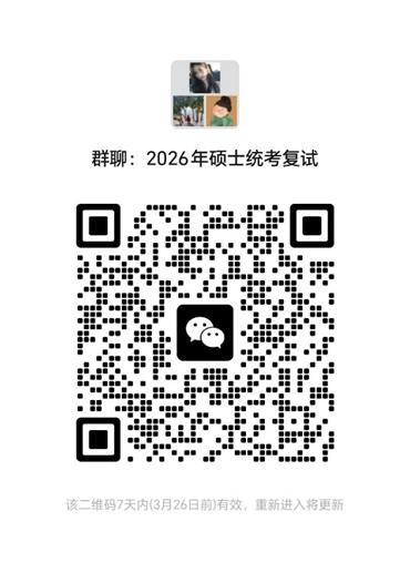 為便于考生咨詢,請進(jìn)入復(fù)試的考生掃描下方二維碼加入微信群,入群后及時將昵稱改為“考生編號后三位+姓名+學(xué)術(shù)型/專業(yè)型”,并注意及時查收郵件及中心碩士統(tǒng)考復(fù)試微信群消息,以便于接收后續(xù)相關(guān)通知。