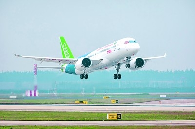 我國具有自主知識產(chǎn)權的大型噴氣式民用飛機C919。