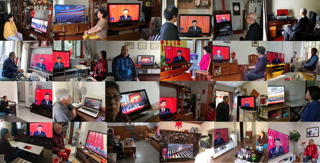 上午10時(shí)大會(huì)正式開(kāi)幕,奏唱國(guó)歌,全體代表為老一輩已故無(wú)產(chǎn)階級(jí)革命家和革命先烈默哀。接下來(lái),在熱烈的掌聲中,習(xí)近平總書(shū)記代表十九屆中央委員會(huì)作報(bào)告。報(bào)告開(kāi)始后,退休黨員們第一時(shí)間紛紛通過(guò)微信發(fā)來(lái)了自己在家觀看這一盛會(huì)的照片,黨員們對(duì)國(guó)家的發(fā)展時(shí)刻關(guān)切,對(duì)這一盛會(huì)的召開(kāi)滿心歡喜,對(duì)祖國(guó)的未來(lái)充滿希望。第十一黨支部宣傳委員錢云杉同志在大會(huì)結(jié)束后的第一時(shí)間發(fā)來(lái)了觀會(huì)感想,她由衷地感慨,中國(guó)共產(chǎn)黨無(wú)愧為偉大光榮正確的黨,過(guò)去的十年,黨帶領(lǐng)人民走在中華民族復(fù)興的道路上,今后黨將繼續(xù)帶領(lǐng)人民完成中華民族復(fù)興的大業(yè)!