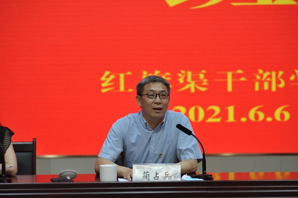 藺占兵在開班式上作動員講話。他指出,“坐下來”學(xué)習(xí)規(guī)定教材是“讀萬卷書”,“走出去”開展紅色教育專題培訓(xùn)是“行萬里路”。各位學(xué)員要在黨史學(xué)習(xí)教育中,通過“讀萬卷書”與“行萬里路”相結(jié)合的方式,深刻領(lǐng)會到中國共產(chǎn)黨為什么“能”、馬克思主義為什么“行”、中國特色社會主義為什么“好”;要大力發(fā)揚(yáng)紅色傳統(tǒng)、傳承紅色基因,學(xué)深悟透黨在百年奮斗歷程中形成的一系列偉大精神,從中汲取豐厚滋養(yǎng),賡續(xù)共產(chǎn)黨人精神血脈;要珍惜此次培訓(xùn)機(jī)會,做到身入心也入,把所學(xué)所思所悟帶到本職工作中去,為中心發(fā)展貢獻(xiàn)應(yīng)有力量。